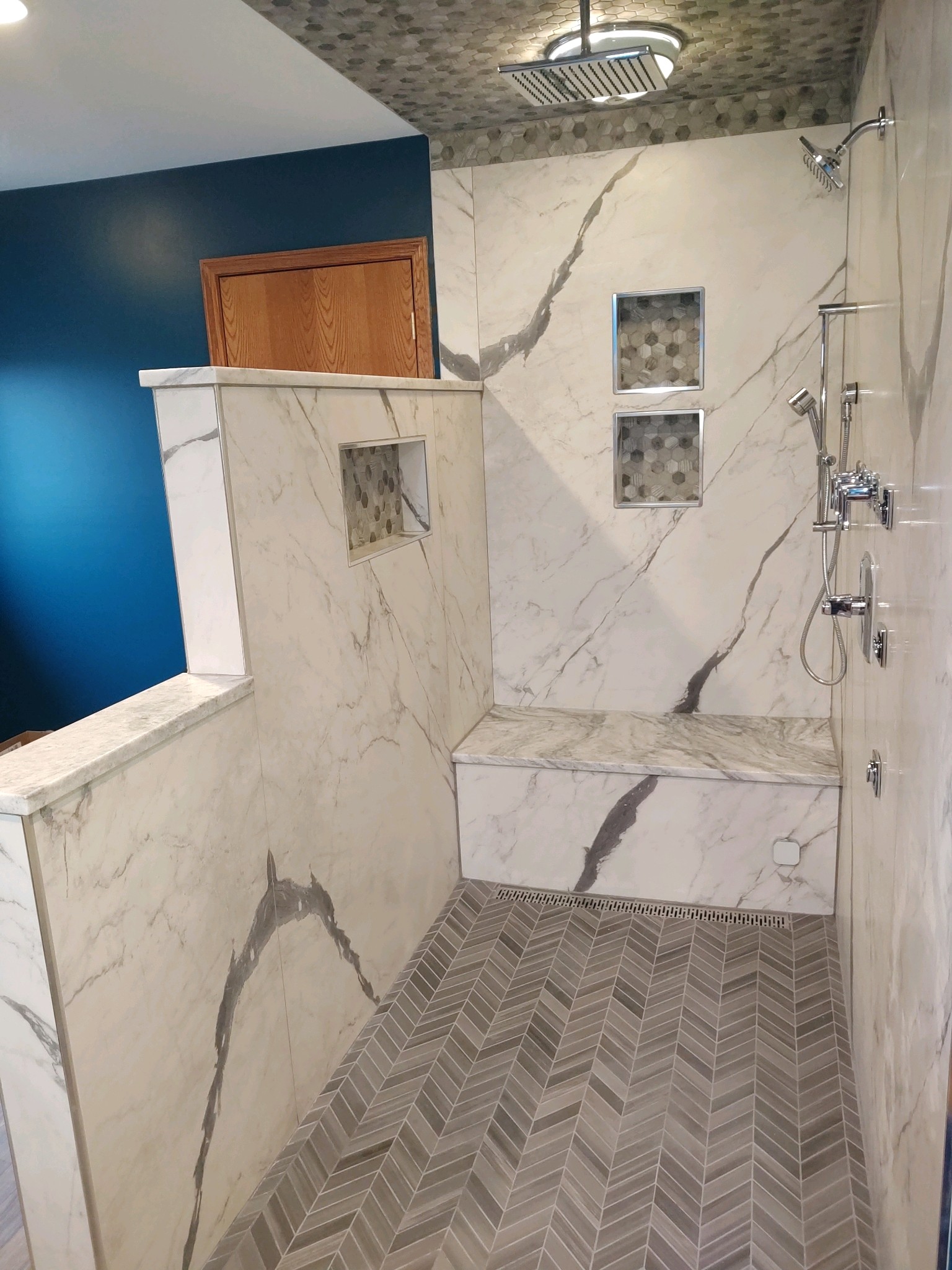 - Porcelain: A stunning modern addition to traditional ceramic tiles without endless grout lines.